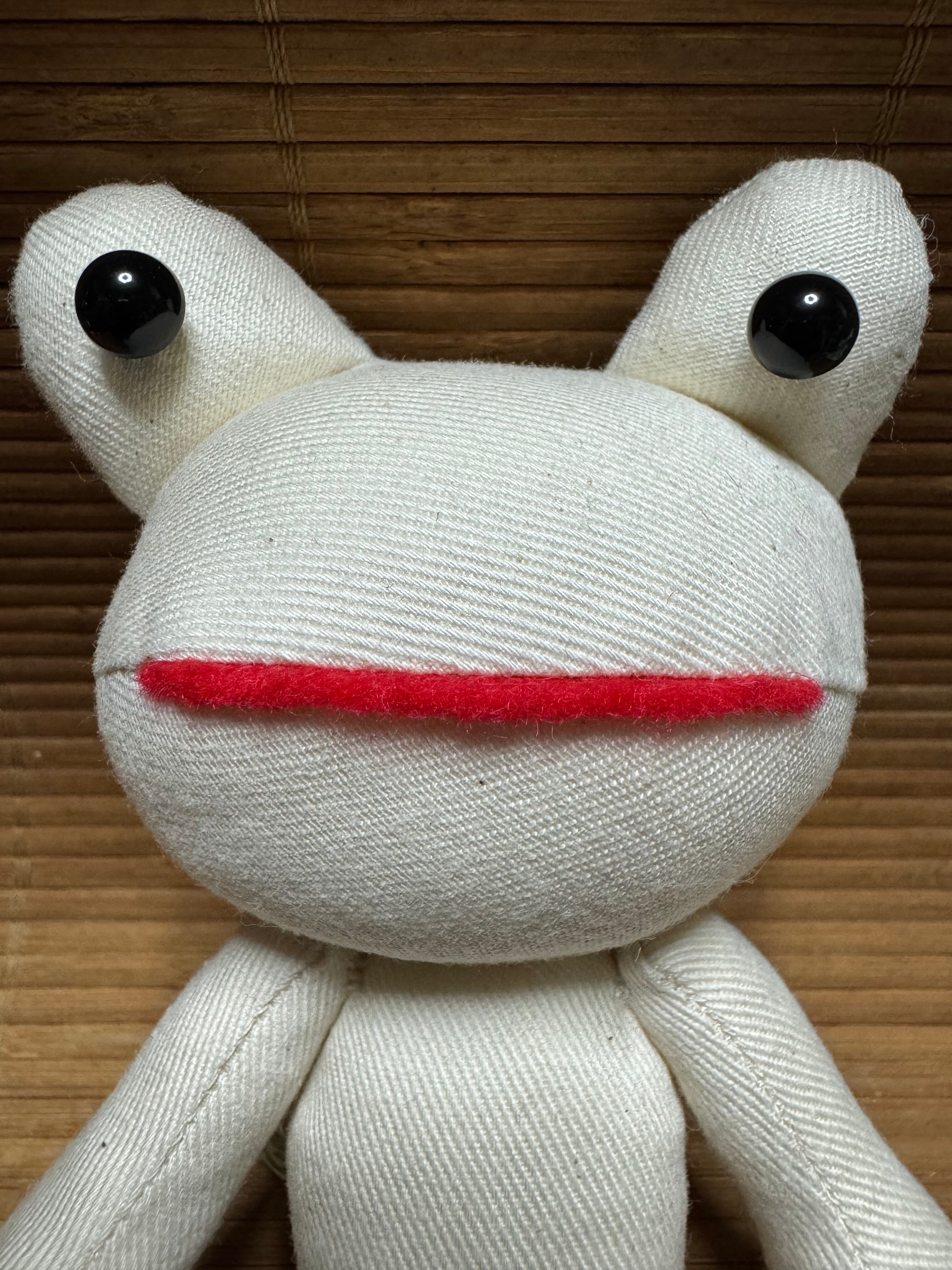 表情豊かでかわいい生成り生地のカエル。