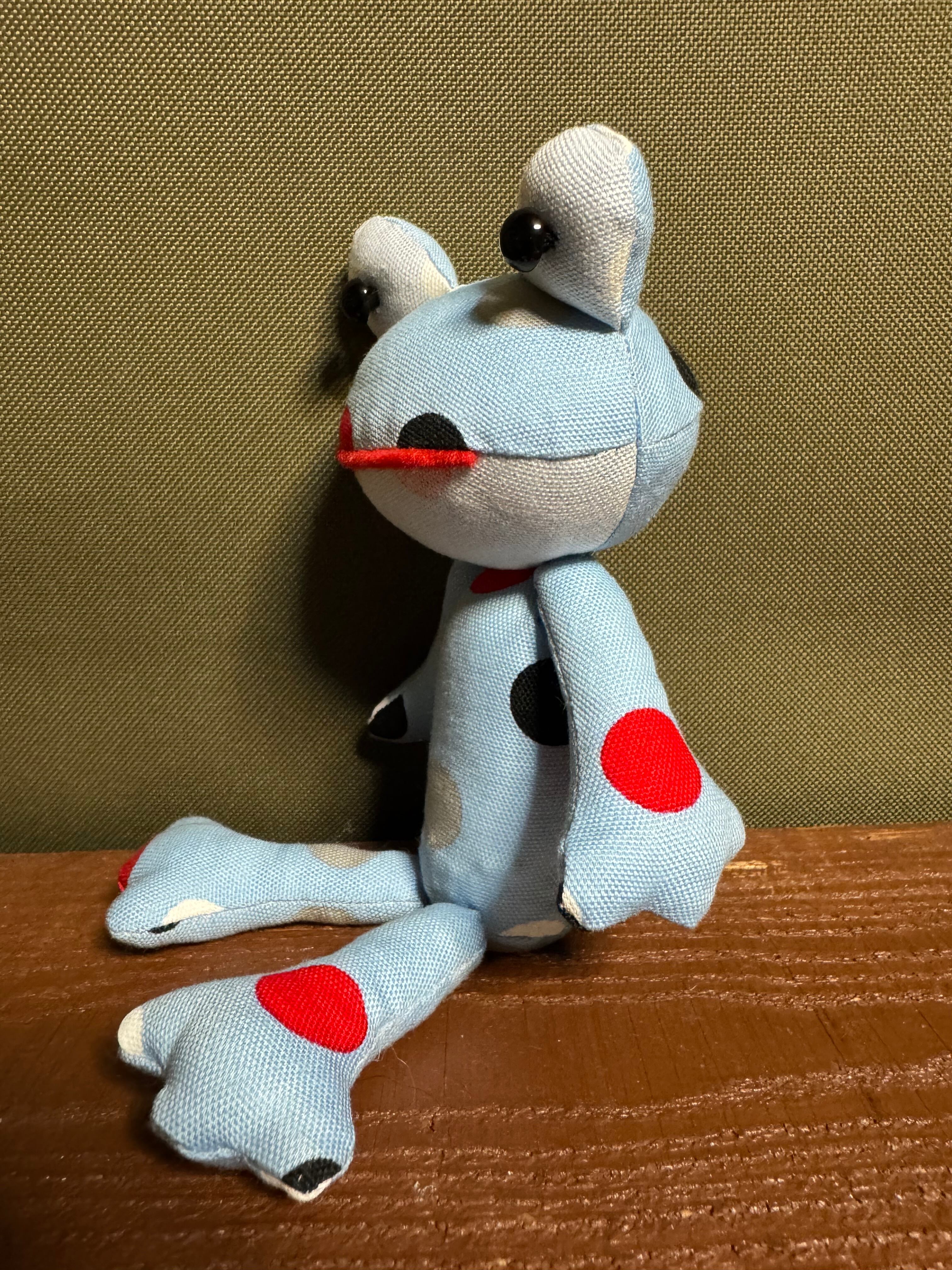 おしりに磁石が入っているので鉄の上にケロっとおすわりします。